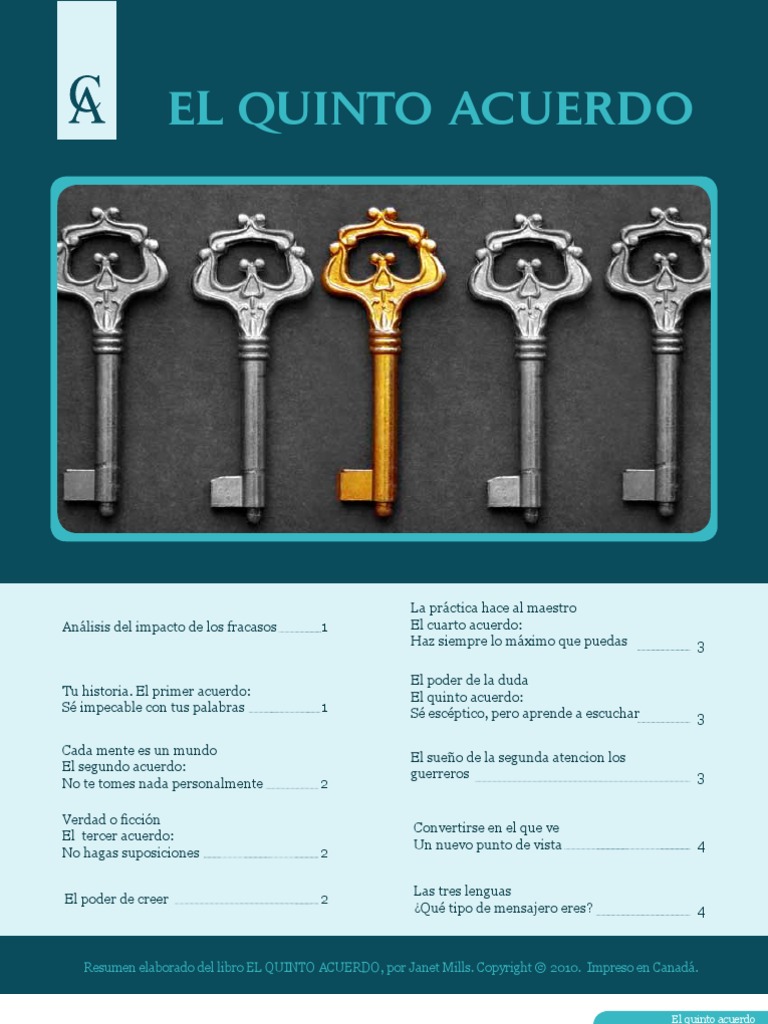 Descarga el ebook el quinto acuerdo ebook del autor miguel ruiz (isbn 9788499444284) en pdf al mejor precio en casa del libro. Share & embed el quinto acuerdo todo.pdf. El quinto acuerdo está escrito por el mexicano miguel ruiz, siendo publicado en 2009 y perteneciendo a la continuación del libro los cuatro si no tienes mucho tiempo para leer el libro, te ofrecemos la posibilidad de descargar el resumen de el quinto acuerdo en word o pdf en los siguientes enlaces Para encontrar más libros sobre el quinto acuerdo pdf, puede utilizar las palabras clave relacionadas : El poder de los hábitos.